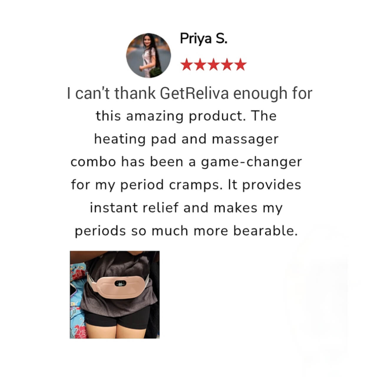 However, the GetReliva Cramp Comfort Period Heating Pad and Massager